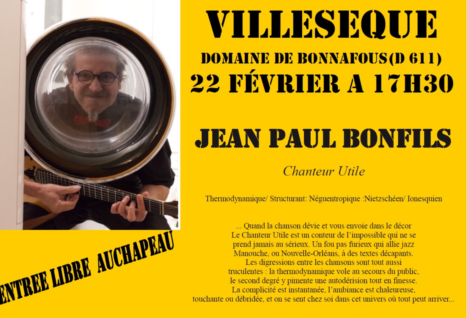 Le Concert aura lieu le Mercredi 27 Aout à 21h AU FOYER DE VILLESEQUE.