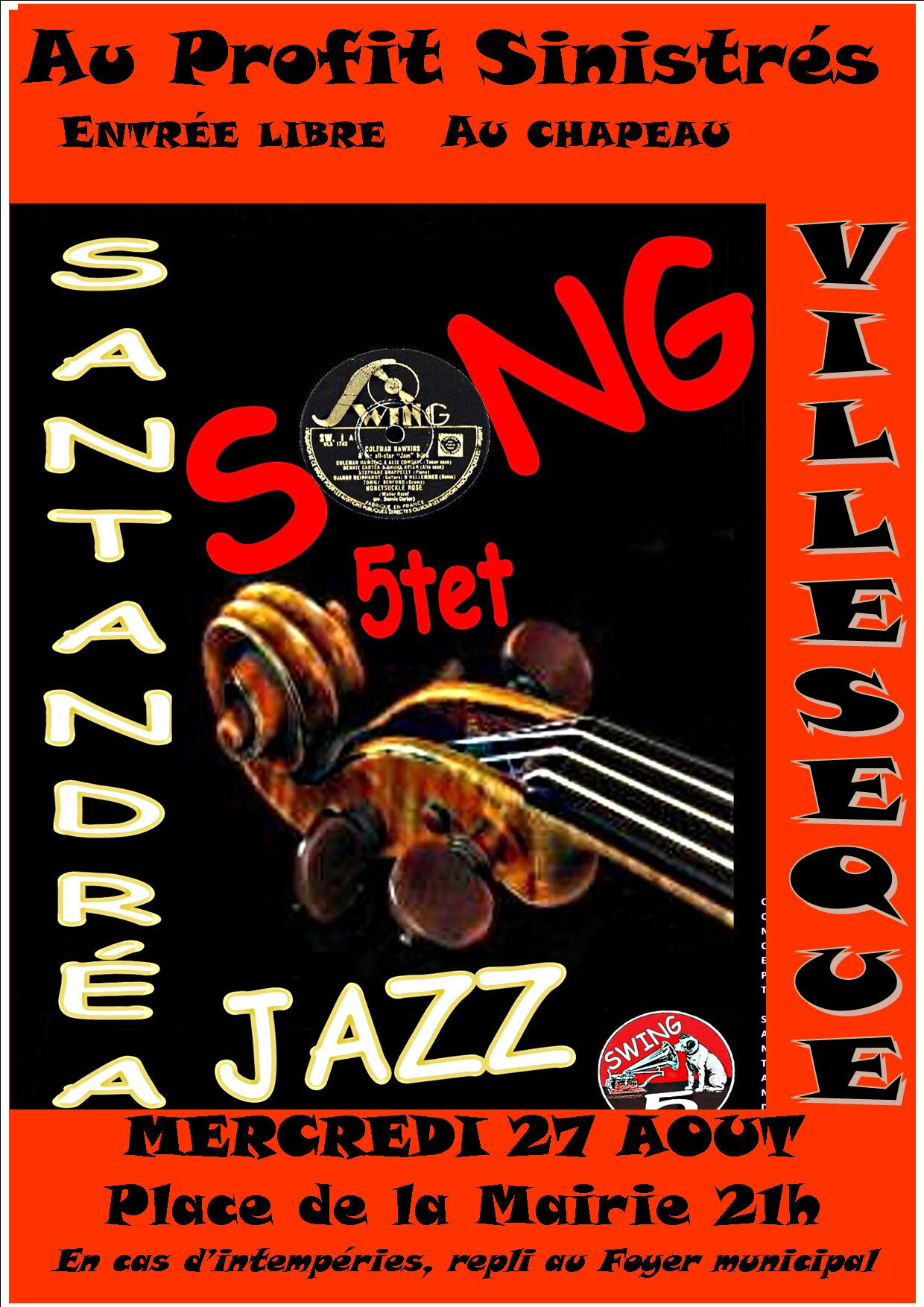 JEUDI 20 JUILLET à 21h CONCERT de JAZZ, HOMMAGE à NOUGARO, avec le groupe SIMPLY JAZZ. Place de la Mairie à VILLESEQUE DES CORBIERES … ENTREE LIBRE AU CHAPEAU