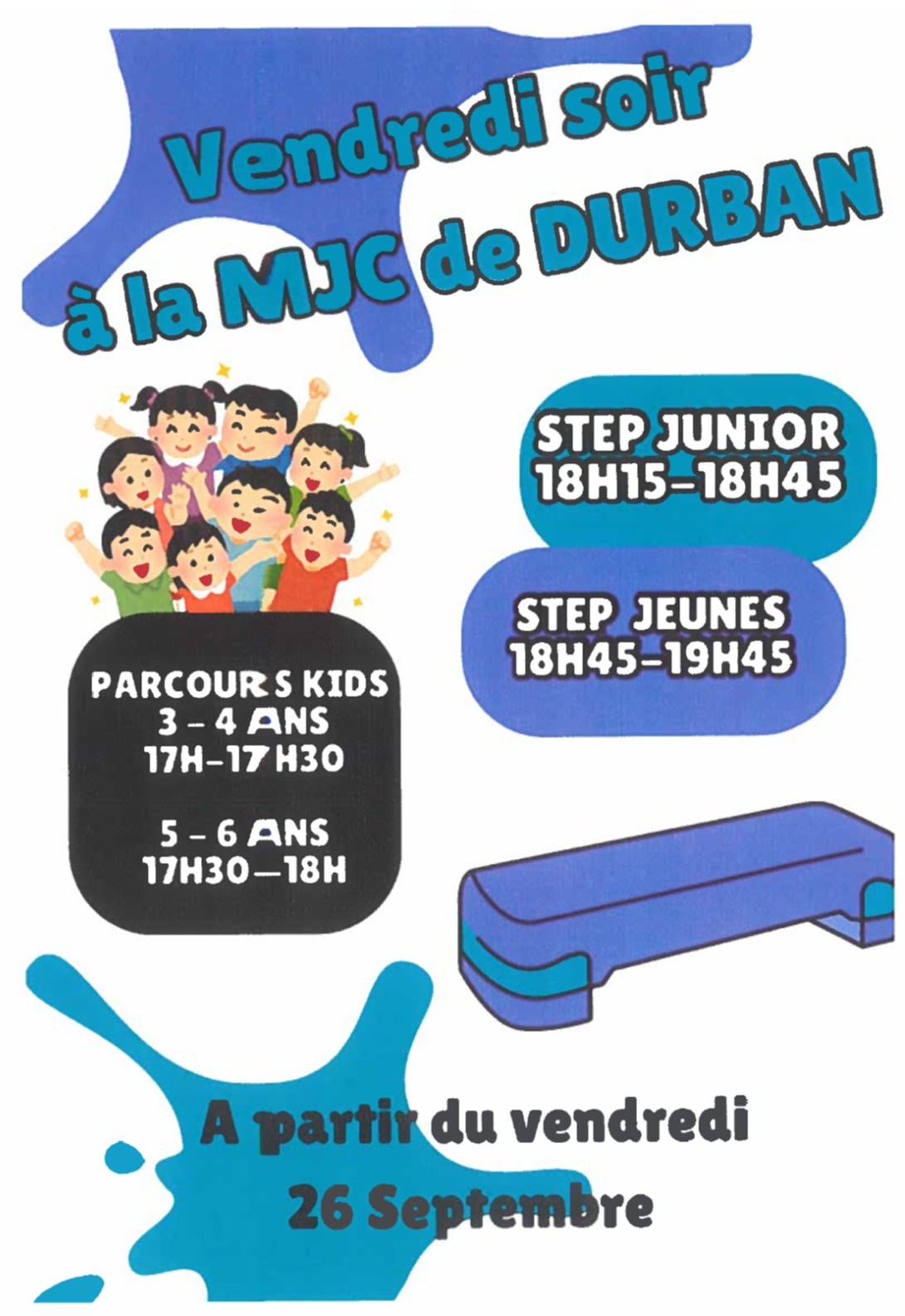 La section STEP de la MJC de DURBAN-CORBIERES a le plaisir de vous inviter à son Gala de Step Junior Samedi 17 mai à 20h30 au foyer Municipal de Durban-Corbières. Entrée gratuite