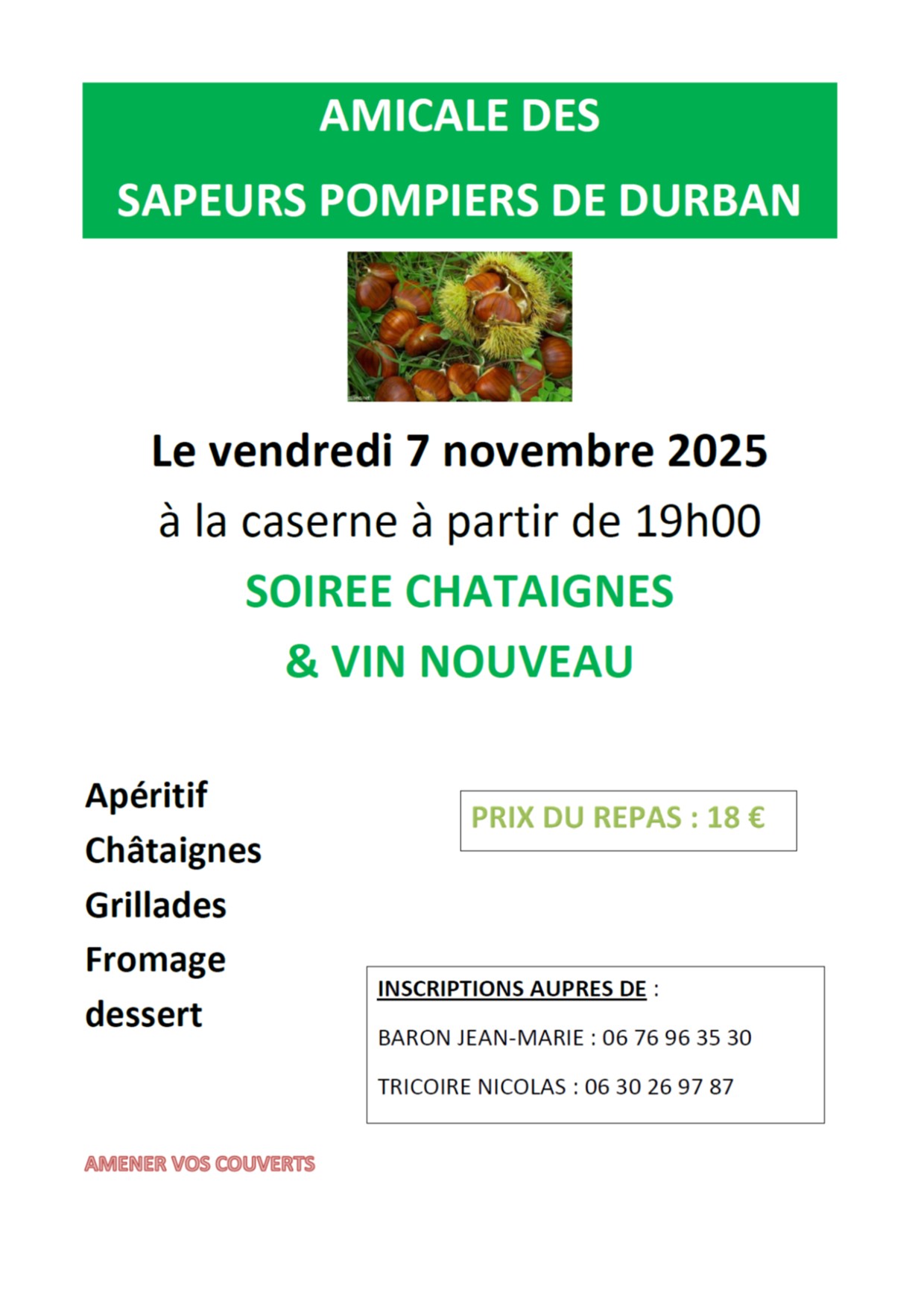 Vendredi 7 Novembre 2025, Amicale des pompiers de Durban, Châtaignes et Vin Nouveau