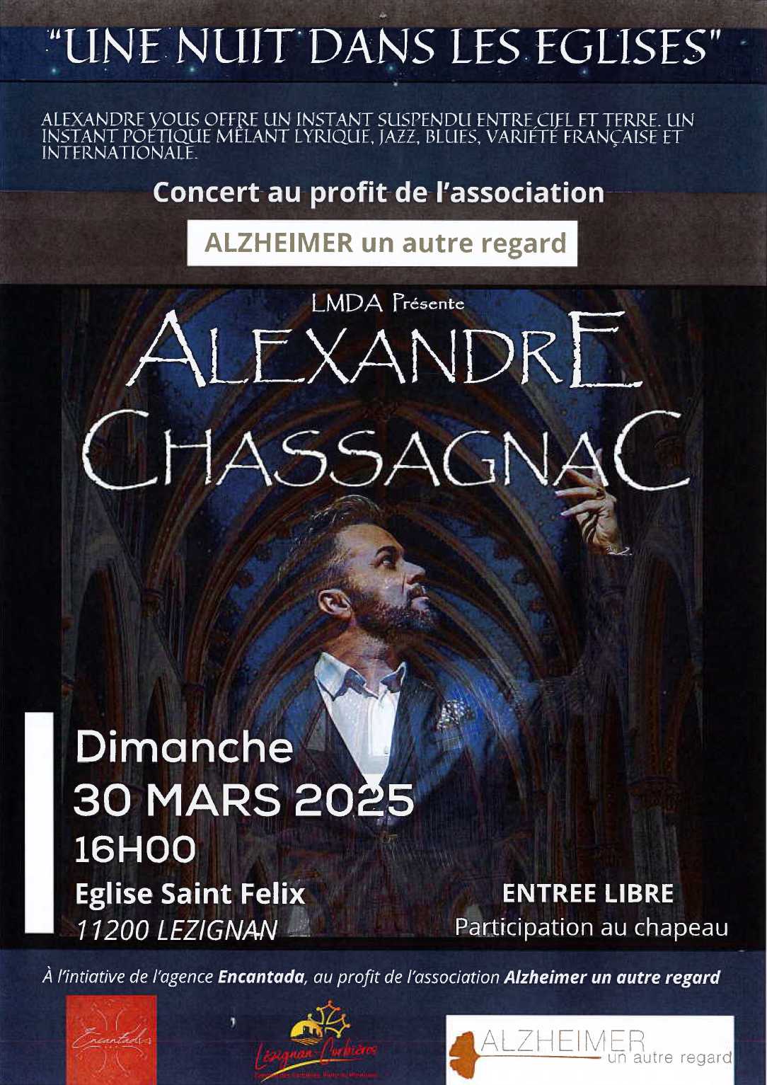 Dimanche 30 Mars, Concert au profit de l’association ALZHEIMER, Eglise saint Félix Lézignan