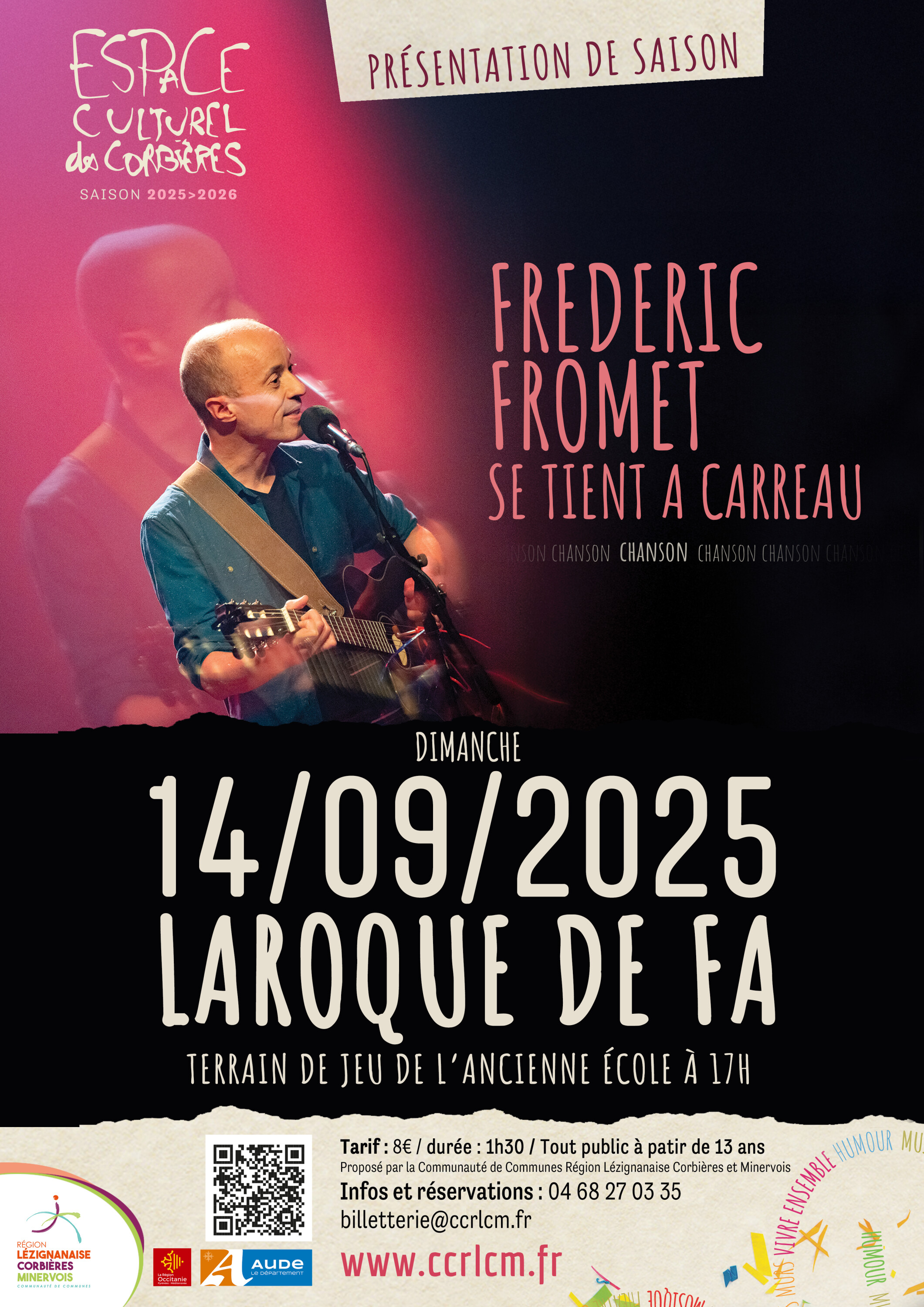 La saison culturelle intercommunale repart dès la mi-septembre avec une présentation de la saison décentralisée à LAROQUE DE FA le DIMANCHE 14 SEPTEMBRE 2025 à 17h.