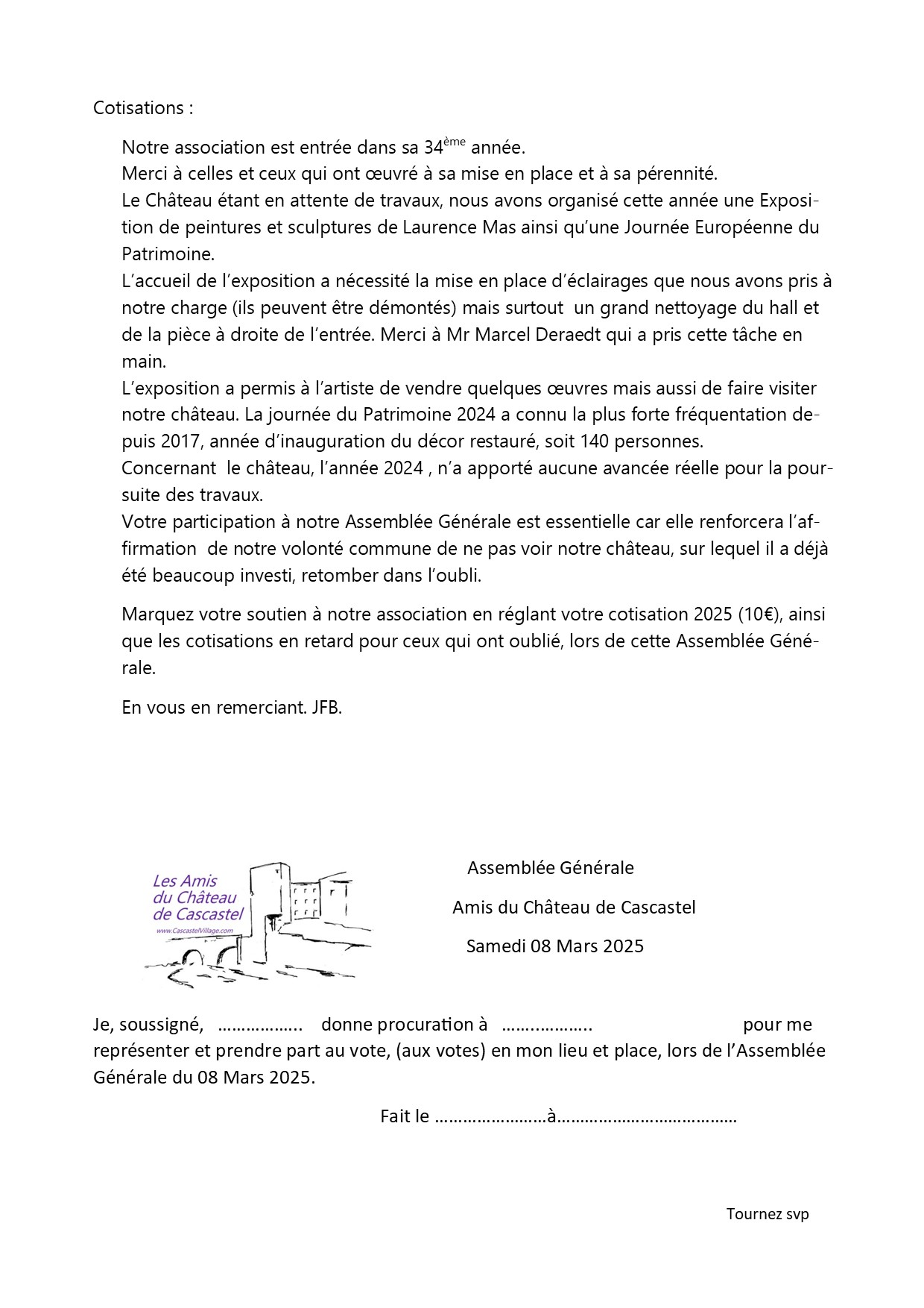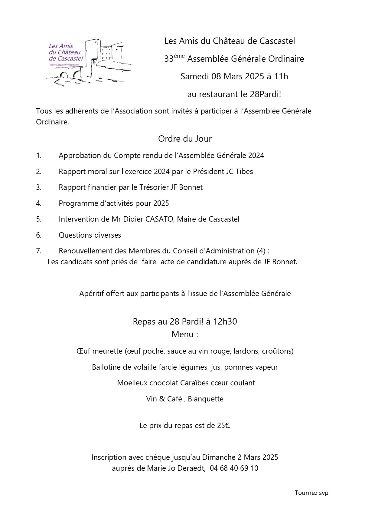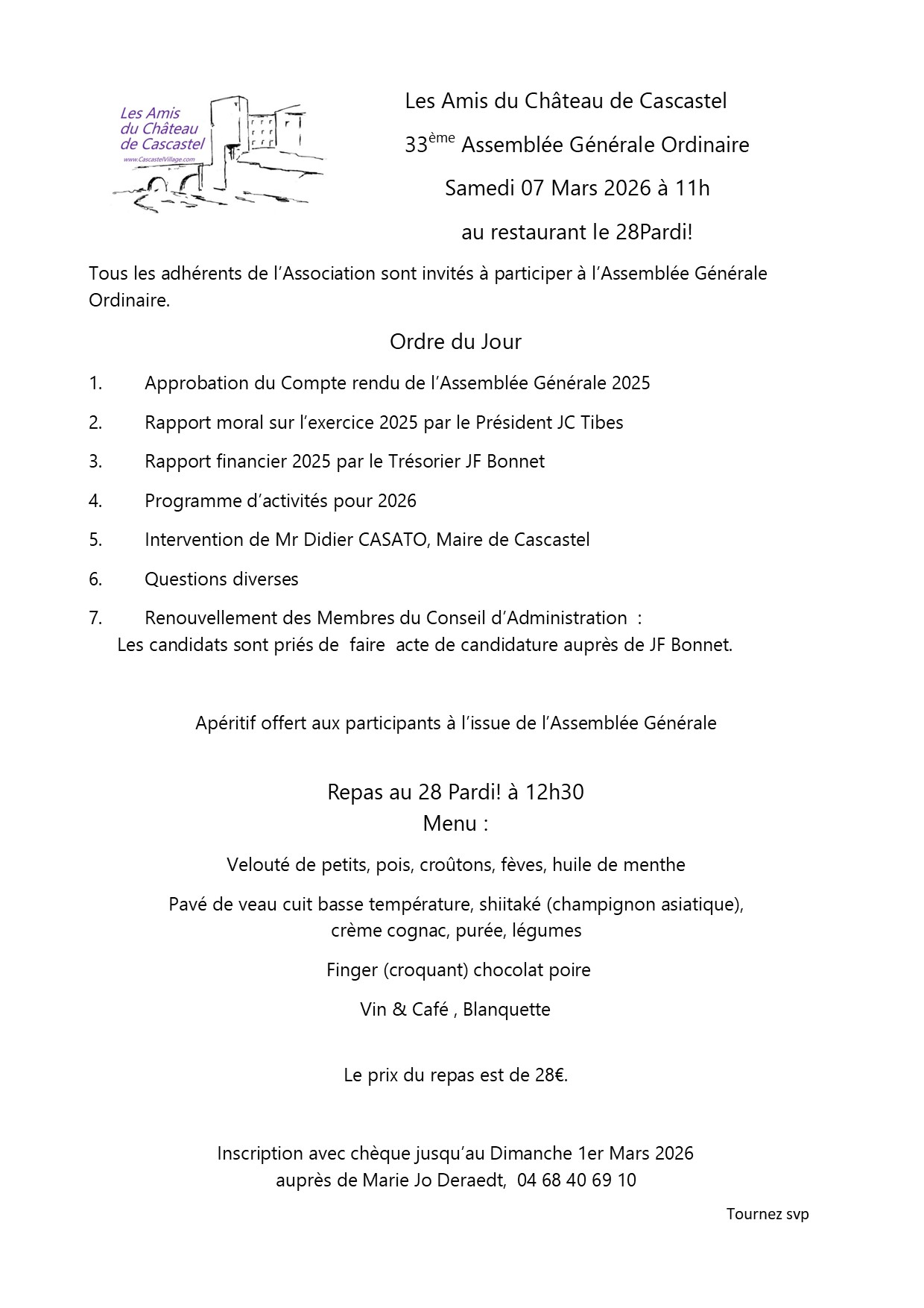 29ème Assemblée Générale des Amis du Château de Cascastel