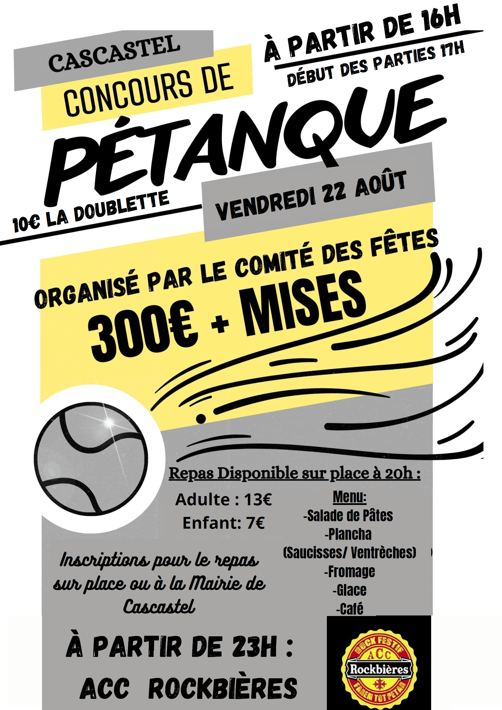 Jeudi 21 Août: Concours de pétanque à partir de 16h, repas possible sur place