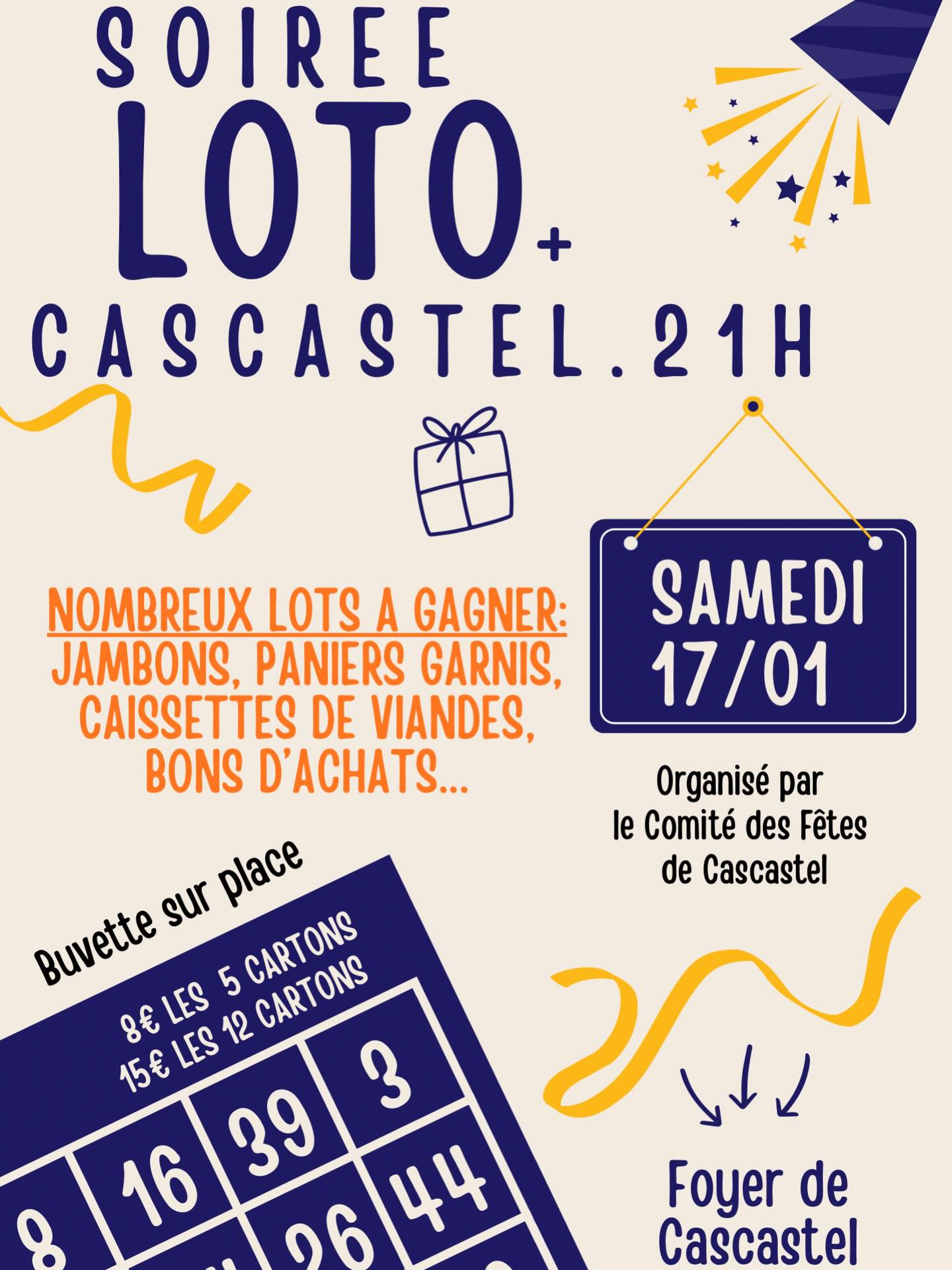 Samadi 17 Janvier, Loto du Comité des Fêtes, au Foyer de Cascastel