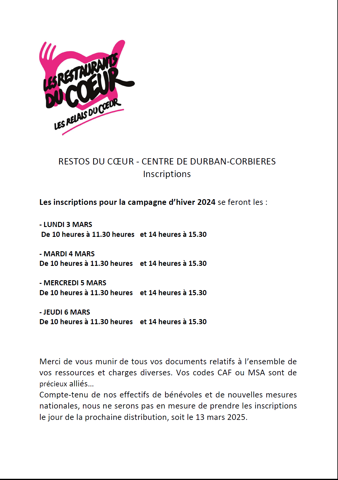 Inscriptions Restos du Cœur, campagne hiver 2025