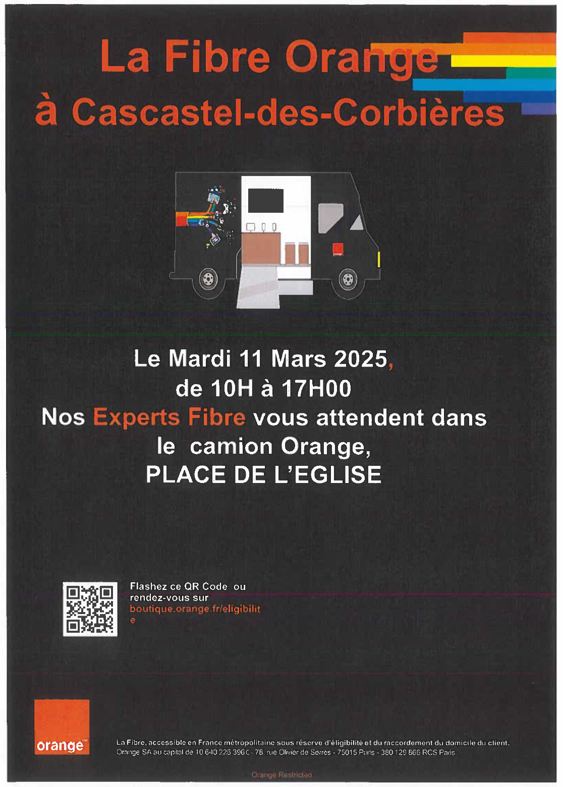 La commune de CASCASTEL DES CORBIERES sera éligible à la fibre optique le 15 février 2025