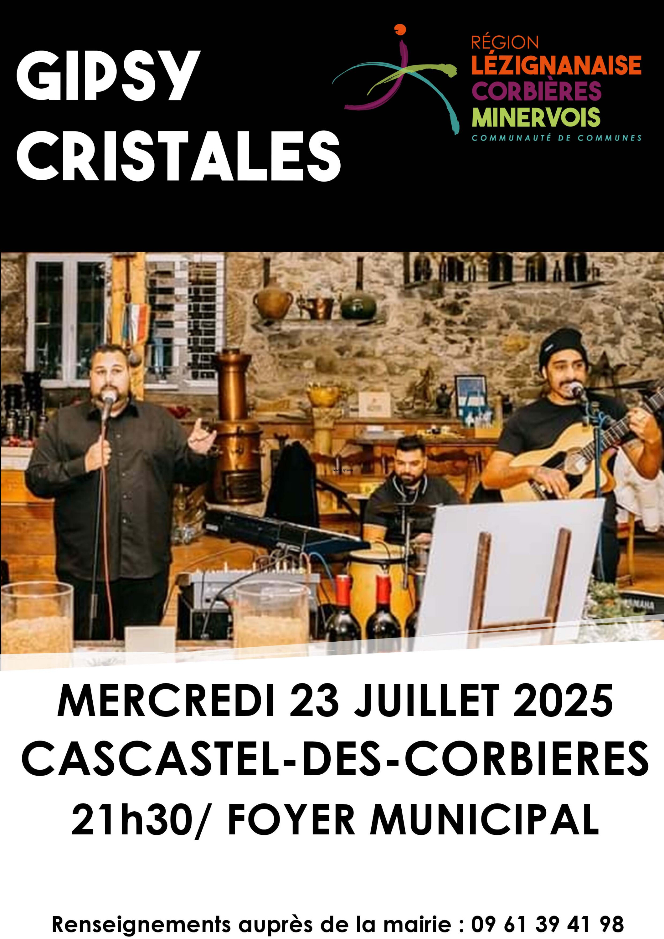 Mercredi 23 Juillet, Animation musicale avec les « GIPSY CRISTALES »,