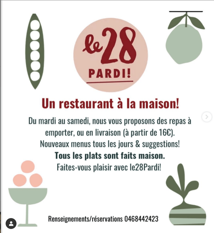 En raison de la crise sanitaire repas à emporter ou en livraison