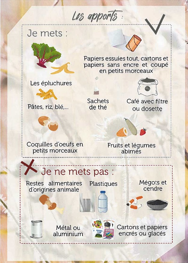 Deux points de compostage ont été mis en place sur la commune. L’obtention d’un bon compost étant une opération délicate dépendant de nombreux facteurs, le rôle des habitants du village se limite à effectuer des apports, le reste du processus étant géré par des spécialistes.