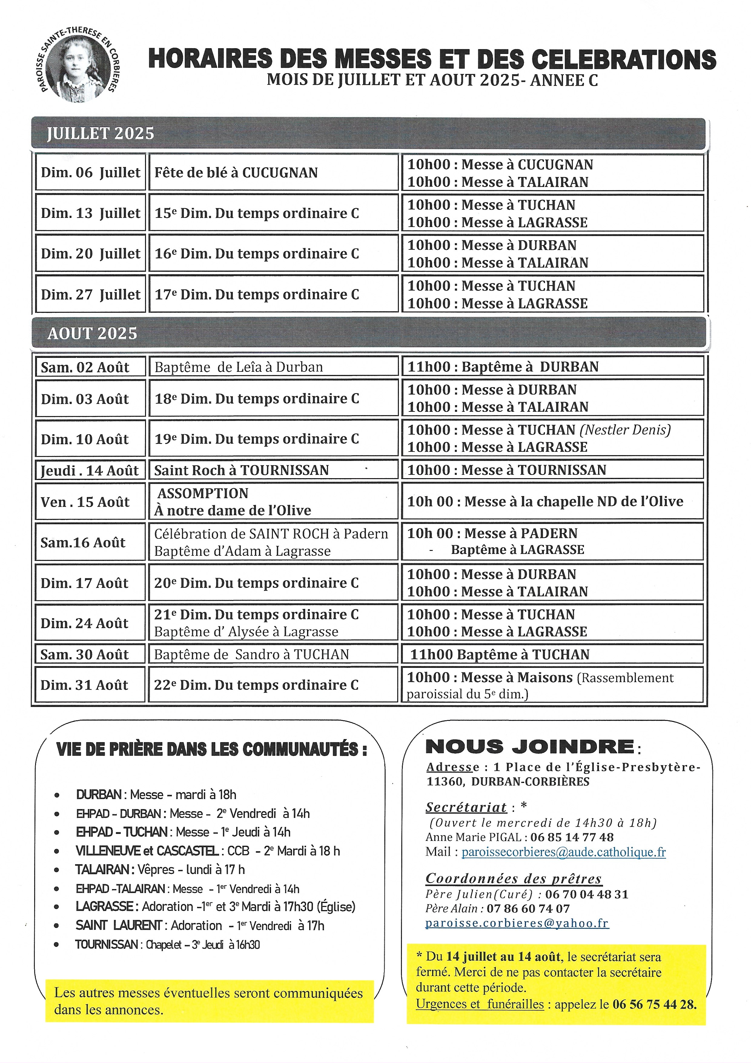 La fête annuelle de la paroisse Sainte Thérèse en Corbières s’est déroulée à Cascastel le dimanche 3 juillet 2016.