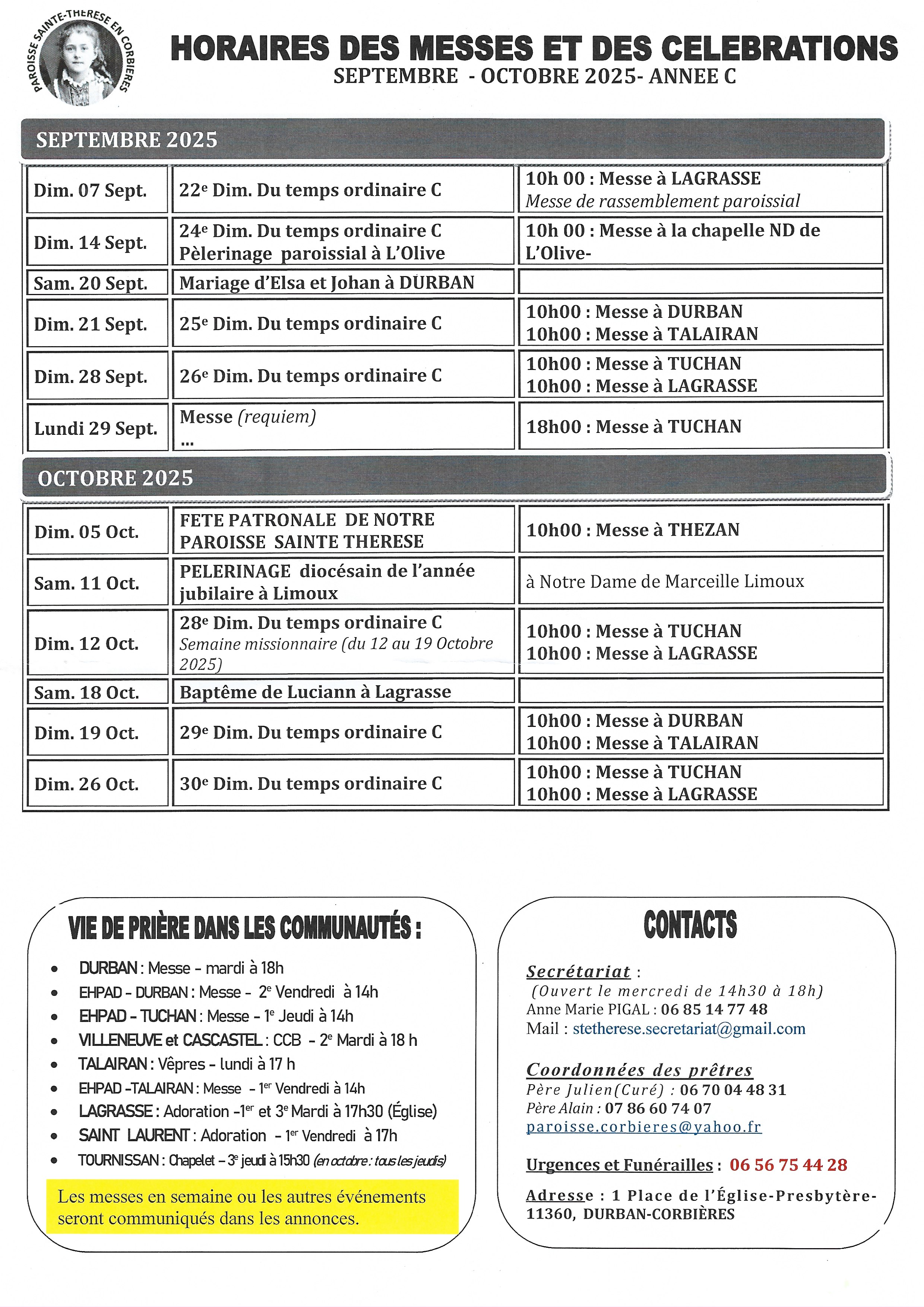 Messes Septembre 2023